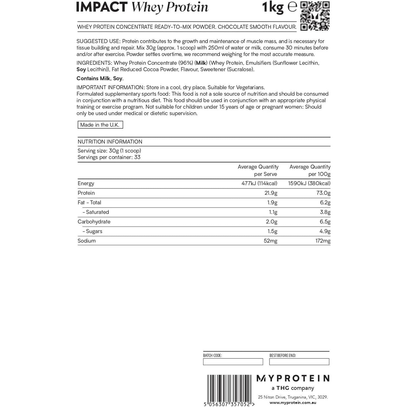 Impact Whey Protein Powder – 1Kg - 21.9G of Protein per Serving, Supports Muscle Building, Recovery & Lean Muscle Maintenance – 33 Servings (1Kg, Chocolate Smooth) - 1Kg / Chocolate